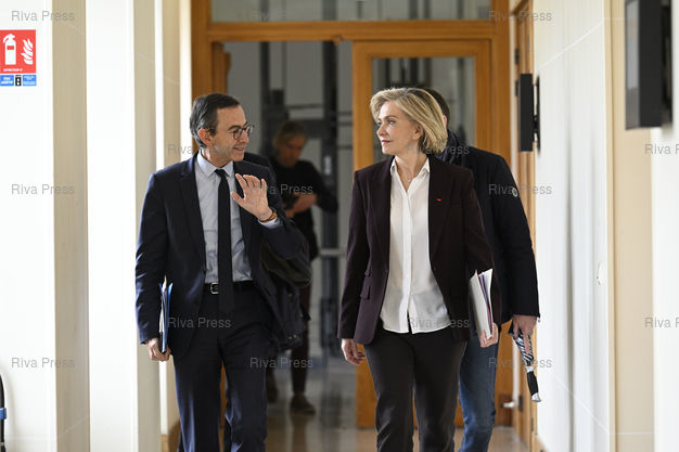 Caption : Valérie Pécresse, candidate LR à l'élection présidentielle, présente le programme des 100 premiers jours de son quinquennat si elle est élue. En présence de Bruno Retailleau /// Valérie Pécresse, candidate of Les Républicains party in the presidential election, presents the program for the first 100 days of her five-year term if she is elected. With Bruno Retailleau - Paris - 31/03/2022 - Photo © Lionel Préau +33 (0)6 68 12 83 77