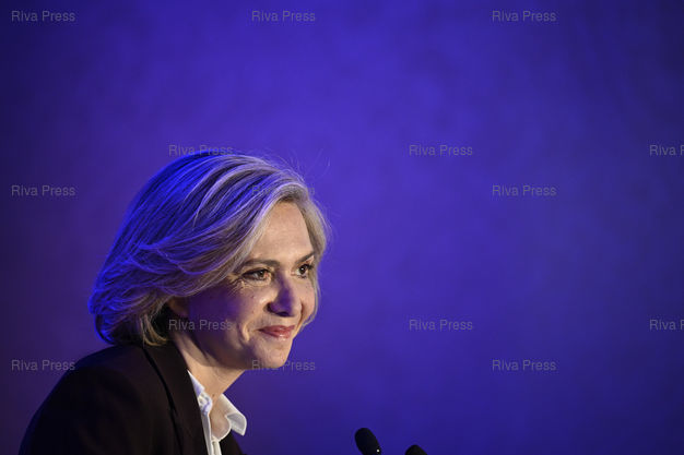 Légende : Valérie Pécresse, candidate LR à l'élection présidentielle, présente le programme des 100 premiers jours de son quinquennat si elle est élue /// Valérie Pécresse, candidate of Les Républicains party in the presidential election, presents the program for the first 100 days of her five-year term if she is elected - Paris - 31/03/2022 - Photo © Lionel Préau +33 (0)6 68 12 83 77
