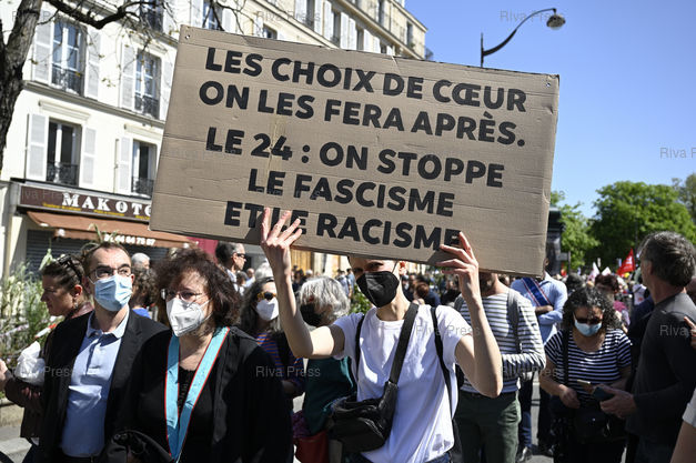 Légende : Manifestation contre l'extrême droite, à huit jours du second tour de la présidentielle qui opposera Marine Le Pen à Emmanuel Macron /// Demonstration against the far right, eight days before the second round of the presidential election which will oppose Marine Le Pen to Emmanuel Macron - Paris - 16/04/2022 - Photo © Lionel Préau +33 (0)6 68 12 83 77
