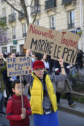 Légende : Manifestation contre l'extrême droite, à huit jours du second tour de la présidentielle qui opposera Marine Le Pen à Emmanuel Macron /// Demonstration against the far right, eight days before the second round of the presidential election which will oppose Marine Le Pen to Emmanuel Macron - Paris - 16/04/2022 - Photo © Lionel Préau +33 (0)6 68 12 83 77