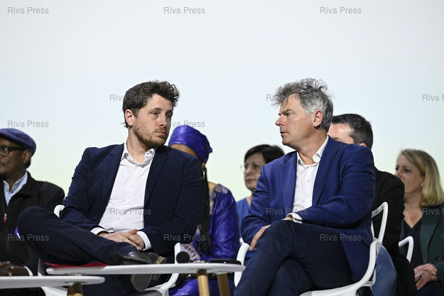 Caption : Convention de la " Nouvelle Union populaire écologique et sociale " pour les élections législatives, après l'accord conclu entre LFI, le PCF, les écologistes et socialistes. Julien Bayou (EELV) - Fabien Roussel (PCF) /// Convention of the New People's Ecological and Social Union ("Nouvelle Union populaire écologique et sociale") for the legislative elections, after the agreement concluded between La France Insoumise, the French Communist Party, Ecologists and Socialists. Julien Bayou (EELV) - Fabien Roussel (PCF) - Aubervilliers - 07/05/2022 - Photo © Lionel Préau +33 (0)6 68 12 83 77