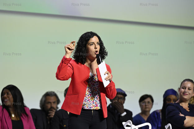 Caption : Convention de la " Nouvelle Union populaire écologique et sociale " pour les élections législatives, après l'accord conclu entre LFI, le PCF, les écologistes et socialistes. Manon Aubry, députée européenne /// Convention of the New People's Ecological and Social Union ("Nouvelle Union populaire écologique et sociale") for the legislative elections, after the agreement concluded between La France Insoumise, the French Communist Party, Ecologists and Socialists. Manon Aubry, MEP - Aubervilliers - 07/05/2022 - Photo © Lionel Préau +33 (0)6 68 12 83 77