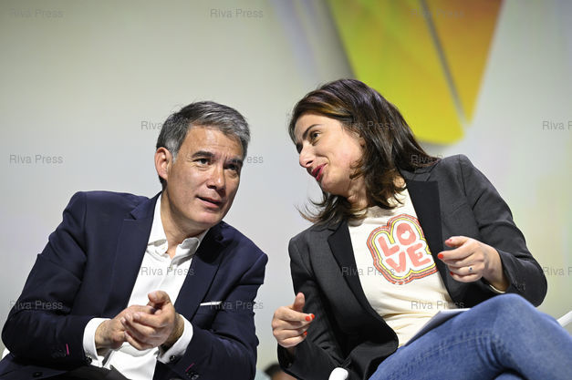 Légende : Convention de la " Nouvelle Union populaire écologique et sociale " pour les élections législatives, après l'accord conclu entre LFI, le PCF, les écologistes et socialistes. Olivier Faure, premier secrétaire du PS - Marine Tondelier (EELV) /// Convention of the New People's Ecological and Social Union ("Nouvelle Union populaire écologique et sociale") for the legislative elections, after the agreement concluded between La France Insoumise, the French Communist Party, Ecologists and Socialists. Olivier Faure, first secretary of the Socialist Party - Marine Tondelier (EELV) - Aubervilliers - 07/05/2022 - Photo © Lionel Préau +33 (0)6 68 12 83 77