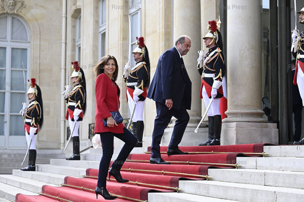 Légende : Cérémonie d'investiture du Président de la République au Palais de l'Elysée. Anne Hidalgo, maire de Paris - Éric Dupond-Moretti, Garde des Sceaux, ministre de la Justice /// Inauguration ceremony of the President of the Republic at the Elysée Palace. Anne Hidalgo, mayor of Paris - Éric Dupond-Moretti, Minister of Justice - Paris - 07/05/2022 - Photo © Lionel Préau +33 (0)6 68 12 83 77