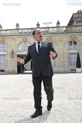 Légende : Cérémonie d'investiture du Président de la République au Palais de l'Elysée. François Hollande, ancien président de la république /// Inauguration ceremony of the President of the Republic at the Elysée Palace. François Hollande, former French President - Paris - 07/05/2022 - Photo © Lionel Préau +33 (0)6 68 12 83 77