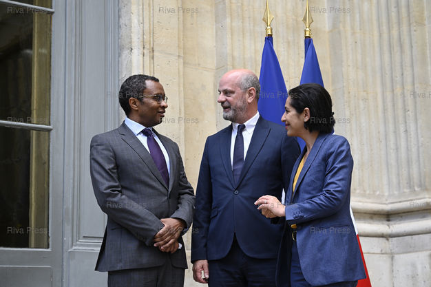 Légende : Passation des pouvoirs entre Jean-Michel Blanquer et Pap Ndiaye, nouveau ministre de l'Education nationale et de la Jeunesse. En présence de Sarah El Hairy, ex-Secrétaire d'Etat /// Transfer of powers between Jean-Michel Blanquer and Pap Ndiaye, new Minister of National Education and Youth. With Sarah El Hairy, former junior minister - Paris - 20/05/2022 - Photo © Lionel Préau +33 (0)6 68 12 83 77