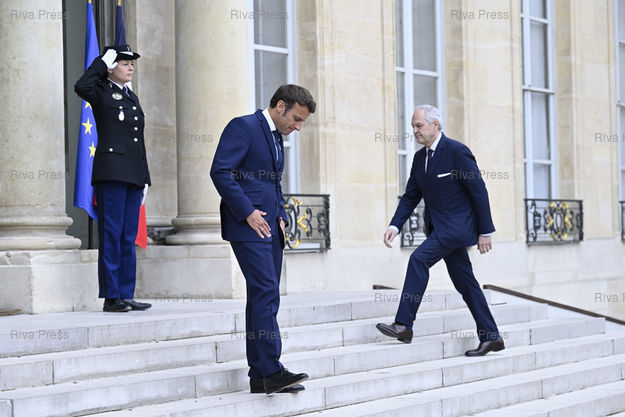 Légende : Emmanuel Macron reçoit Ursula Von Der Leyen, présidente de la Commission européenne, pour un déjeuner de travail au Palais de l'Elysée /// Emmanuel Macron receives Ursula Von Der Leyen, President of the European Commission, for a working lunch at the Elysée Palace - Paris - 03/06/2022 - Photo © Lionel Préau +33 (0)6 68 12 83 77