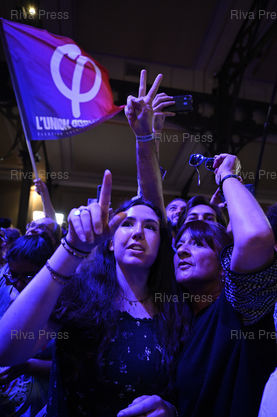 Caption : Soirée électorale de la Nouvelle Union Populaire Écologique et Sociale (NUPES) pour le 2d tour des élections législatives /// Electoral evening of the New Popular Ecological and Social Union (Nouvelle Union Populaire Écologique et Sociale - NUPES) for the 2nd round of the legislative elections - Paris - 19/06/2022 - Photo © Lionel Préau +33 (0)6 68 12 83 77