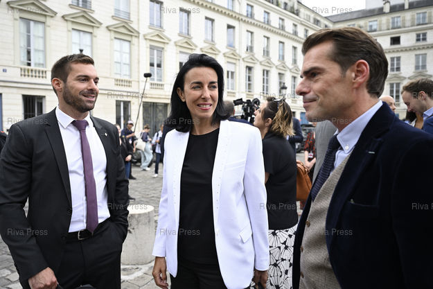 Légende : Entrée à l'Assemblée nationale des nouveaux députés du Rassemblement National. Julien Odoul, député de l'Yonne - Alexandra Masson, députée des Alpes-Maritimes - Emmanuel Tache de la Pagerie, député des Bouches-du-Rhône /// Entry into the National Assembly of new MP of the far-right Rassemblement National party. Julien Odoul, MP of Yonne - Alexandra Masson, MP of Alpes-Maritimes - Emmanuel Tache de la Pagerie, MP of Bouches-du-Rhône - Paris - 22/06/2022 - Photo © Lionel Préau +33 (0)6 68 12 83 77