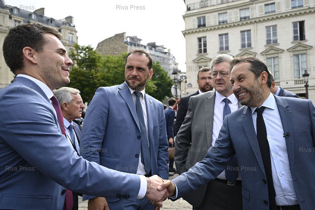 Légende : Entrée à l'Assemblée nationale des nouveaux députés du Rassemblement National. /// Entry into the National Assembly of new MP of the far-right Rassemblement National party. - Paris - 22/06/2022 - Photo © Lionel Préau +33 (0)6 68 12 83 77
