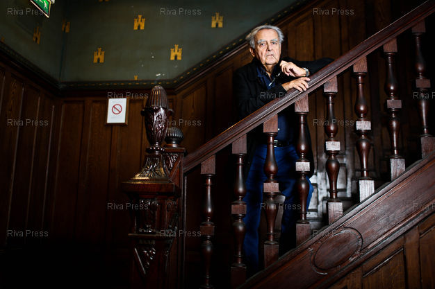 Légende : Bernard Pivot pose chez lui. Paris, FRANCE-18/09/2012