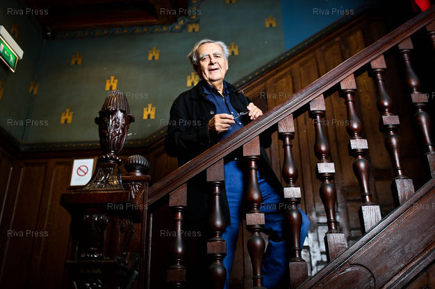 Légende : Bernard Pivot pose chez lui. Paris, FRANCE-18/09/2012