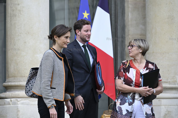 Légende : Conseil des ministres au palais de l'Elysée. Amélie Oudéa-Castéra, ministre des Sports et des Jeux Olympiques et Paralympiques - Clément Beaune, ministre délégué chargé des transports - Sylvie Retailleau, ministre de l'Enseignement supérieur et de la Recherche /// Cabinet meeting at the Elysee Palace. Amélie Oudéa-Castéra, Minister of Sports and the Olympic and Paralympic Games - Clément Beaune, Minister delegate in charge of transport - Sylvie Retailleau, Minister of Higher Education and Research - Paris - 20/07/2022 - Photo © Lionel Préau +33 (0)6 68 12 83 77