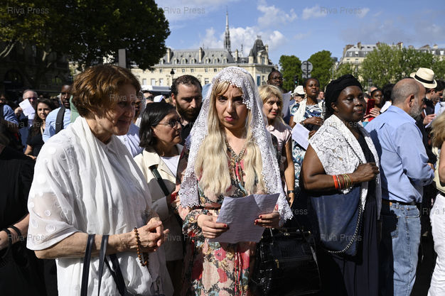 Légende : Procession en l'honneur de l'Assomption dans les rues du Vème arrondissement de Paris par les catholiques traditionalistes de l'église Saint-Nicolas-du-Chardonnet /// Procession in honor of the Assumption in the streets of the 5th arrondissement of Paris by the traditionalist Catholics of the church of Saint-Nicolas-du-Chardonnet - Paris - 15/08/2022 - Photo © Lionel Préau +33 (0)6 68 12 83 77