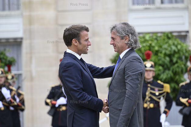 Légende : Emmanuel Macron reçoit Robert Golob, président du gouvernement de la République de Slovénie, pour un déjeuner de travail au palais de l'Elysée /// Emmanuel Macron receives Robert Golob, President of the Government of the Republic of Slovenia, for a working lunch at the Elysée Palace - Paris - 01/09/2022 - Photo © Lionel Préau +33 (0)6 68 12 83 77