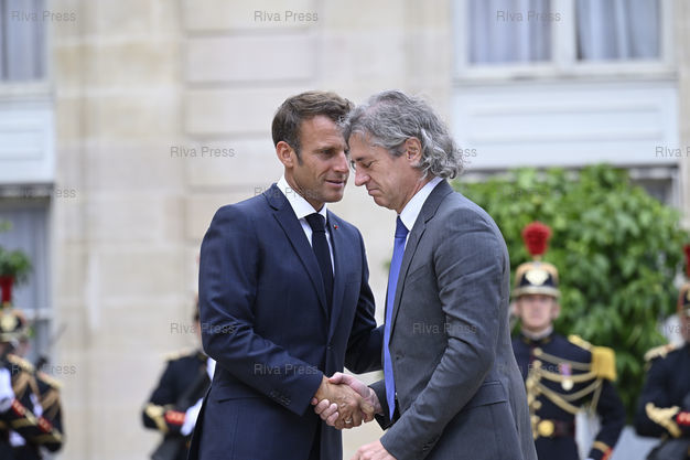 Caption : Emmanuel Macron reçoit Robert Golob, président du gouvernement de la République de Slovénie, pour un déjeuner de travail au palais de l'Elysée /// Emmanuel Macron receives Robert Golob, President of the Government of the Republic of Slovenia, for a working lunch at the Elysée Palace - Paris - 01/09/2022 - Photo © Lionel Préau +33 (0)6 68 12 83 77
