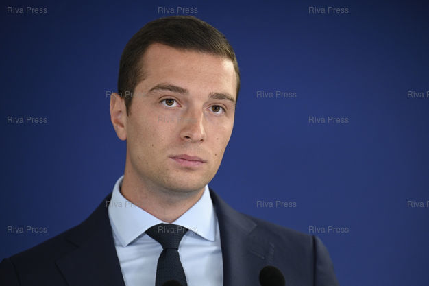 Légende : Jordan Bardella, président par intérim du Rassemblement national, lance la nouvelle campagne nationale du RN sur la Justice "Rompre avec le Dupond-Morettisme" lors d'une conférence de presse /// Jordan Bardella, acting president of the Rassemblement National party, launches the RN's new national campaign on Justice "Break with Dupond-Morettism" during a press conference - Paris - 08/09/2022 - Photo © Lionel Préau +33 (0)6 68 12 83 77