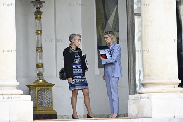 Légende : Conseil des ministres au palais de l'Elysée. Elisabeth Borne, première ministre - Agnès Pannier-Runacher, ministre de la Transition énergétique /// Cabinet meeting at the Elysee Palace. Elisabeth Borne, Prime Minister - Agnès Pannier-Runacher, Minister for Energy Transition - Paris - 05/10/2022 - Photo © Lionel Préau +33 (0)6 68 12 83 77
