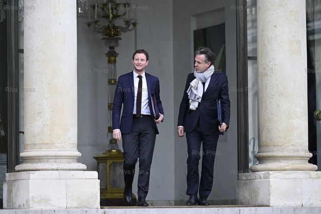 Légende : Conseil des ministres au palais de l'Elysée. Clément Beaune, ministre délégué chargé des transports - Christophe Béchu, ministre de la Transition écologique et de la Cohésion des territoires /// Cabinet meeting at the Elysee Palace. Clément Beaune, Minister delegate in charge of transport - hristophe Béchu, Minister for Ecological Transition and Territorial Cohesion - Paris - 05/10/2022 - Photo © Lionel Préau +33 (0)6 68 12 83 77