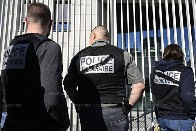 Légende : Des membres de la "Police judiciaire" se rassemblent devant leur QG parisien pour montrer leur soutien au directeur de la PJ de la zone sud de la France Eric Arella, limogé le lendemain d’une manifestation contre la réforme de la PJ /// Members of the "Judicial Police" gather outside their Paris headquarters to show their support for the director of the PJ of the southern zone of France Eric Arella, sacked the day after a demonstration against the reform of the PJ - Paris - 11/10/2022 - Photo © Lionel Préau +33 (0)6 68 12 83 77