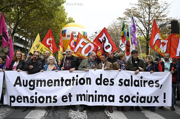 Légende : Manifestation parisienne de la Journée nationale interprofessionnelle de grève et manifestations, à l'appel de la CGT, pour les salaires et contre les réquisitions. En présence de Philippe Martinez (CGT) et Frédéric Souillot (FO) /// Demonstration for the National Interprofessional Strike Day, at the call of the CGT union, for wages and against requisitions. With Philippe Martinez (CGT) and Frédéric Souillot (FO) - Paris - 18/10/2022 - Photo © Lionel Préau +33 (0)6 68 12 83 77