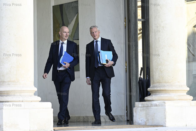 Légende : Conseil des ministres au palais de l'Elysée. Roland Lescure, ministre délégué chargé de l'Industrie - Bruno Le Maire, ministre de l'Economie, des Finances et de la Souveraineté industrielle et numérique /// Cabinet meeting at the Elysee Palace. Roland Lescure, Minister Delegate for Industry - Bruno Le Maire, Minister of Economy, Finance and Industrial and Digital Sovereignty - Paris - 26/10/2022 - Photo © Lionel Préau +33 (0)6 68 12 83 77