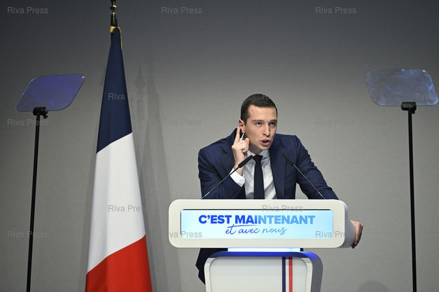 Légende : Congrès du Rassemblement National. Jordan Bardella, nouveau président du RN /// Congress of the Rassemblement National far-right party. Jordan Bardella, new President of the RN - Paris - 05/11/2022 - Photo © Lionel Préau +33 (0)6 68 12 83 77