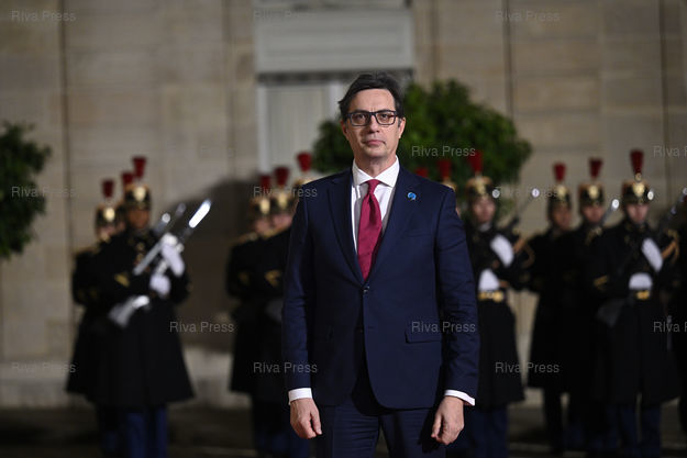 Légende : Dîner de clôture du Forum de Paris sur la paix au Palais de l'Elysée. Stevo Pendarovski, président de la République de Macédoine /// Closing dinner of the Paris Peace Forum at the Elysée Palace. Stevo Pendarovski, President of the Republic of Macedonia - Paris - 11/11/2022 - Photo © Lionel Préau +33 (0)6 68 12 83 77