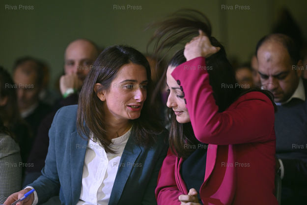 Légende : Congrès fédéral d'Europe Ecologie Les Verts (EELV). Marine Tondelier, élure nouvelle Secrétaire nationale d'EELV - Marie-Charlotte Garin, députée du Rhone /// Federal Congress of Europe Ecologie Les Verts (EELV). Marine Tondelier, new national Secretary of EELV - Marie-Charlotte Garin, MP of the Rhone - Rungis - 10/12/2022 - Photo © Lionel Préau +33 (0)6 68 12 83 77
