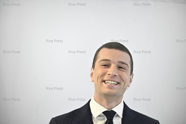 Légende : Le Rassemblement National présente ses voeux à la presse. Jordan Bardella, président du RN /// The Rassemblement National party presents its wishes to the press. Jordan Bardella, President of the RN - Paris - 10/01/2023 - Photo © Lionel Préau +33 (0)6 68 12 83 77