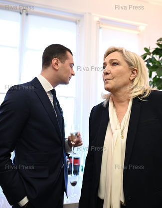 Légende : Le Rassemblement National présente ses voeux à la presse. Jordan Bardella, président du RN - Marine Le Pen, présidente du groupe RN à l'Assemblée nationale /// The Rassemblement National party presents its wishes to the press. Jordan Bardella, President of the RN - Marine Le Pen, President of the RN group at the National Assembly - Paris - 10/01/2023 - Photo © Lionel Préau +33 (0)6 68 12 83 77