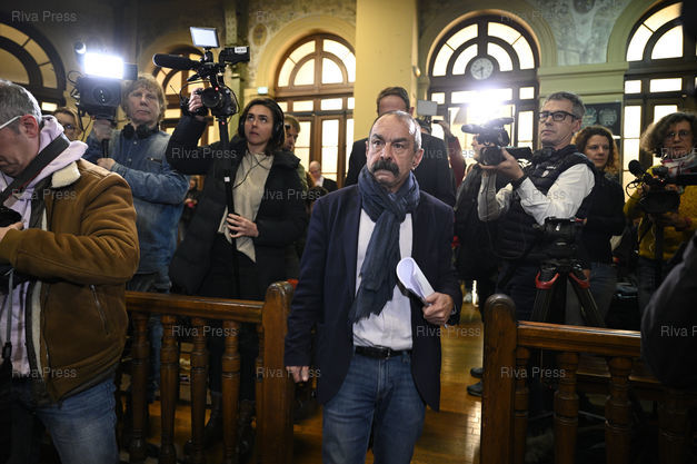 Légende : Les leaders des huit grandes organisations syndicales se rassemblent à la Bourse du travail pour annoncer leur riposte aux annonces gouvernementales sur la réforme des retraites . Philippe Martinez, secrétaire général de la CGT /// The leaders of the eight major trade unions gather at the Bourse du travail to announce their response to government announcements on pension reform. Philippe Martinez, general secretary of the CGT - Paris - 10/01/2023 - Photo © Lionel Préau +33 (0)6 68 12 83 77