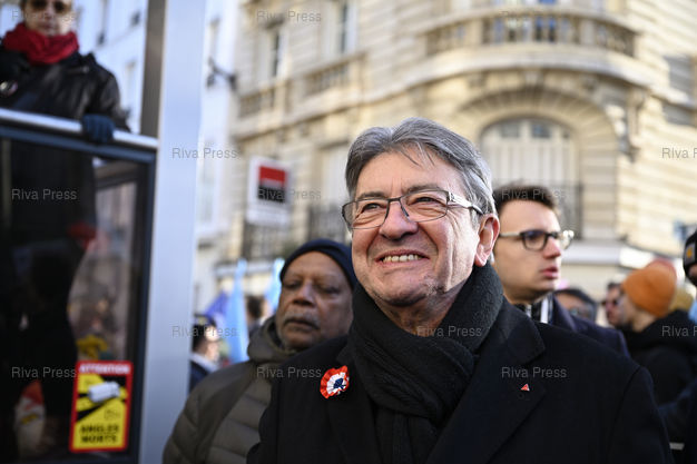 Légende : Manifestation contre la réforme des retraites, à l'appel d'organisations de jeunes, et soutenue activement par La France insoumise. Jean-Luc-Mélenchon, leader de LFI /// Demonstration against the pension reform, at the call of youth organizations, and actively supported by La France insoumise. Jean-Luc-Mélenchon, leader of LFI - Paris - 21/01/2023 - Photo © Lionel Préau +33 (0)6 68 12 83 77