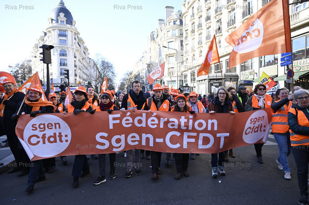 Mots-clés : 2023, cfdt, Demonstration, Greve, Manifestation, Paris, pensions, Protest, Reform, reforme, retraite, Retraites, sgen, Strike
