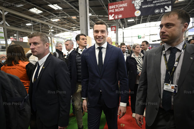 Légende : Jordan Bardella, président du Rassemblement national, visite le Salon de l'agriculture /// Jordan Bardella, President of the Rassemblement National party, visits the French agricultural exhibition - Paris - 03/03/2023 - Photo © Lionel Préau +33 (0)6 68 12 83 77