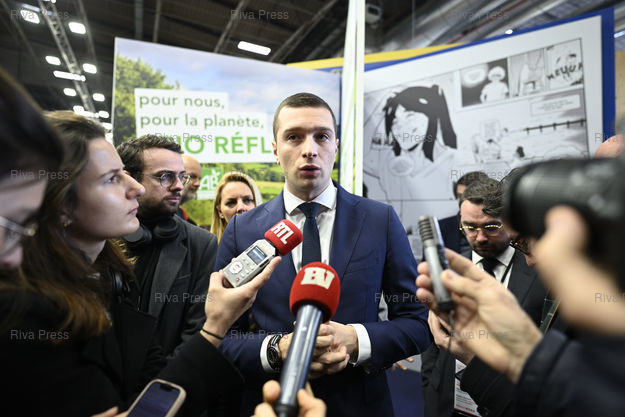 Légende : Jordan Bardella, président du Rassemblement national, visite le Salon de l'agriculture /// Jordan Bardella, President of the Rassemblement National party, visits the French agricultural exhibition - Paris - 03/03/2023 - Photo © Lionel Préau +33 (0)6 68 12 83 77
