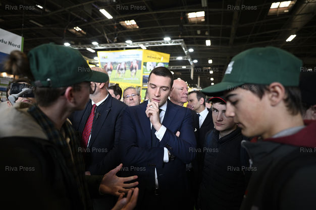 Légende : Jordan Bardella, président du Rassemblement national, visite le Salon de l'agriculture /// Jordan Bardella, President of the Rassemblement National party, visits the French agricultural exhibition - Paris - 03/03/2023 - Photo © Lionel Préau +33 (0)6 68 12 83 77
