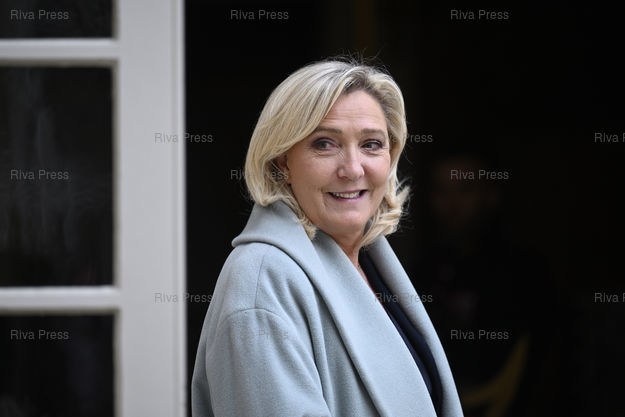 Légende : Elisabeth Borne, Première ministre, reçoit Marine Le Pen, présidente du groupe Rassemblement National à l'Assemblée nationale, dans le cadre de ses consultations, et deux jours avant la 12eme journée de mobilisation contre la réforme des retraites /// Elisabeth Borne, Prime Minister, receives Marine Le Pen, president of the Rassemblement National group at the National Assembly, as part of her consultations, and two days before the 12th day of mobilization against the pension reform - Paris - 11/04/2023 - Photo © Lionel Préau +33 (0)6 68 12 83 77