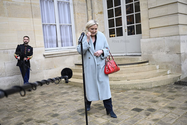 Légende : Elisabeth Borne, Première ministre, reçoit Marine Le Pen, présidente du groupe Rassemblement National à l'Assemblée nationale, dans le cadre de ses consultations, et deux jours avant la 12eme journée de mobilisation contre la réforme des retraites /// Elisabeth Borne, Prime Minister, receives Marine Le Pen, president of the Rassemblement National group at the National Assembly, as part of her consultations, and two days before the 12th day of mobilization against the pension reform - Paris - 11/04/2023 - Photo © Lionel Préau +33 (0)6 68 12 83 77
