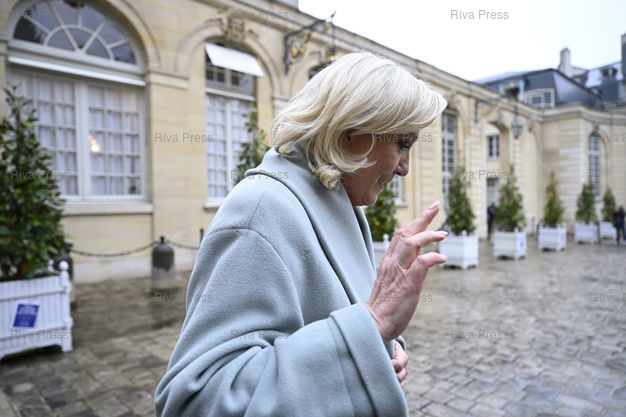 Légende : Elisabeth Borne, Première ministre, reçoit Marine Le Pen, présidente du groupe Rassemblement National à l'Assemblée nationale, dans le cadre de ses consultations, et deux jours avant la 12eme journée de mobilisation contre la réforme des retraites /// Elisabeth Borne, Prime Minister, receives Marine Le Pen, president of the Rassemblement National group at the National Assembly, as part of her consultations, and two days before the 12th day of mobilization against the pension reform - Paris - 11/04/2023 - Photo © Lionel Préau +33 (0)6 68 12 83 77