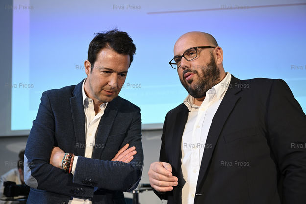 Caption : Convention électorale de Reconquête, qui rassemble les futurs candidats du parti pour une journée de formation dédiée aux élections législatives anticipées et aux élections municipales. Guillaume Peltier, vice-président de Reconquête, et Philippe Vardon /// Electoral Convention of the far-right Reconquete party, which brings together future party candidates for a day of training dedicated to early legislative elections and municipal elections. Guillaume Peltier, VP of Reconquete, and Philippe Vardon - Paris - 15/04/2023 - Photo © Lionel Préau +33 (0)6 68 12 83 77