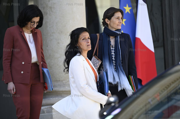 Légende : Conseil des ministres au palais de l'Elysée. Rima Abdul-Malak, ministre de la Culture - Chrysoula Zacharopoulou, secrétaire d'Etat chargée du Développement, de la Francophonie et des Partenariats internationaux - Amélie Oudéa-Castéra, ministre des Sports et des Jeux Olympiques et Paralympiques /// Cabinet meeting at the Elysee Palace. Rima Abdul-Malak, Minister of Culture - Chrysoula Zacharopoulou, junior minister for Development, Francophonie and International Partnerships - Amélie Oudéa-Castéra, Minister of Sports and the Olympic and Paralympic Games - Paris - 03/05/2023 - Photo © Lionel Préau +33 (0)6 68 12 83 77