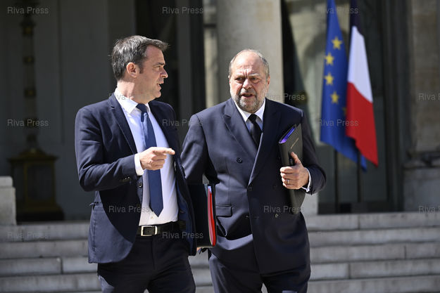 Légende : Conseil des ministres au palais de l'Elysée. Olivier Véran, ministre délégué chargé du Renouveau démocratique, porte-parole du Gouvernement - Eric Dupond-Moretti, ministre de la Justice /// Cabinet meeting at the Elysee Palace. Olivier Véran, Minister Delegate for Democratic Renewal, Government Spokesperson - Eric Dupond-Moretti, Minister of Justice - Paris - 03/05/2023 - Photo © Lionel Préau +33 (0)6 68 12 83 77