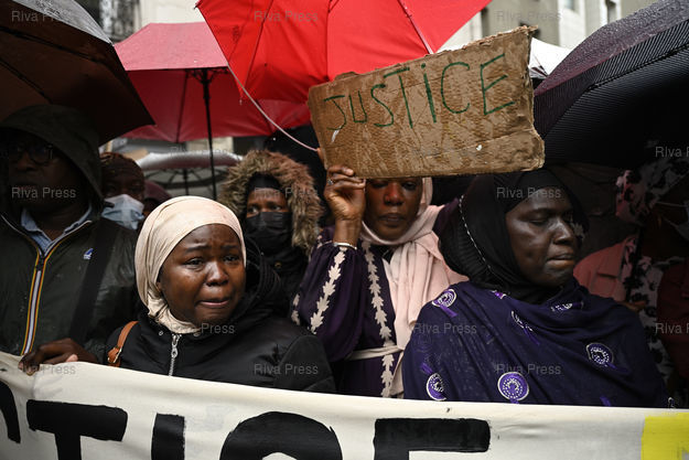 Légende : Marche pour demander "vérité et justice pour Safyatou, Salif et Ilan", mineurs blessés après avoir été percutés par un véhicule de police après un refus d'obtempérer. L'un des policiers a été mis en examen, soupçonné d'avoir volontairement percuté le deux-roues avec son véhicule. Famille devant le lieu du choc /// March to demand "truth and justice for Safyatou, Salif and Ilan", minors injured after being hit by a police vehicle after refusing to comply. One of the police officers was indicted, suspected of having deliberately hit the two-wheeler with his vehicle. Family in front of the scene of the shock - Paris - 07/05/2023 - Photo © Lionel Préau +33 (0)6 68 12 83 77