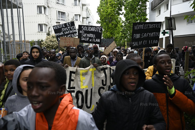 Légende : Marche pour demander "vérité et justice pour Safyatou, Salif et Ilan", mineurs blessés après avoir été percutés par un véhicule de police après un refus d'obtempérer. L'un des policiers a été mis en examen, soupçonné d'avoir volontairement percuté le deux-roues avec son véhicule /// March to demand "truth and justice for Safyatou, Salif and Ilan", minors injured after being hit by a police vehicle after refusing to comply. One of the police officers was indicted, suspected of having deliberately hit the two-wheeler with his vehicle - Paris - 07/05/2023 - Photo © Lionel Préau +33 (0)6 68 12 83 77