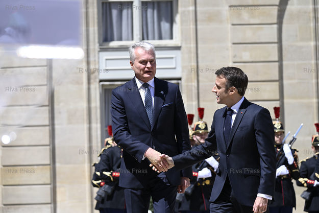 Légende : Emmanuel Macron reçoit Gitanas Nauseda, Président de la République de Lituanie, au Palais de l'Elysée /// Emmanuel Macron receives Gitanas Nauseda, President of the Republic of Lithuania, at the Elysée Palace - Paris - 24/05/2023 - Photo © Lionel Préau +33 (0)6 68 12 83 77