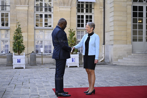 Légende : Elisabeth Borne, première ministre, reçoit Anatole Collinet Makosso, Premier ministre de la République du Congo /// Elisabeth Borne, Prime Minister, receives Anatole Collinet Makosso, Prime Minister of the Republic of Congo - Paris - 02/06/2023 - Photo © Lionel Préau +33 (0)6 68 12 83 77