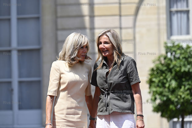 Légende : Brigitte Macron reçoit l'épouse de l'ancien Premier ministre grec Mareva Grabowski-Mitsotakis au Palais de l'Elysée /// Brigitte Macron receives the wife of former Greek Prime Minister Mareva Grabowski-Mitsotakis at the Elysée Palace - Paris - 16/06/2023 - Photo © Lionel Préau +33 (0)6 68 12 83 77
