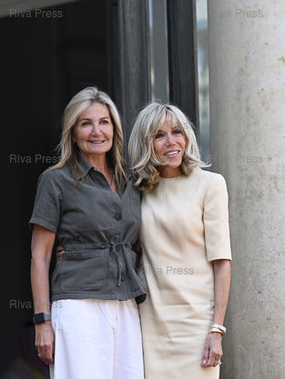 Légende : Brigitte Macron reçoit l'épouse de l'ancien Premier ministre grec Mareva Grabowski-Mitsotakis au Palais de l'Elysée /// Brigitte Macron receives the wife of former Greek Prime Minister Mareva Grabowski-Mitsotakis at the Elysée Palace - Paris - 16/06/2023 - Photo © Lionel Préau +33 (0)6 68 12 83 77