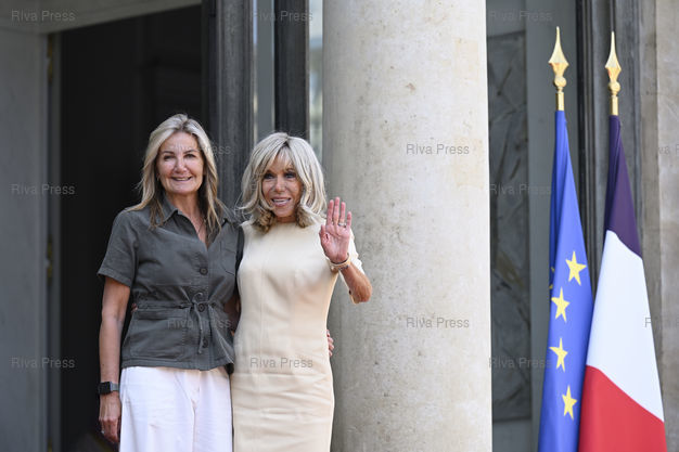 Légende : Brigitte Macron reçoit l'épouse de l'ancien Premier ministre grec Mareva Grabowski-Mitsotakis au Palais de l'Elysée /// Brigitte Macron receives the wife of former Greek Prime Minister Mareva Grabowski-Mitsotakis at the Elysée Palace - Paris - 16/06/2023 - Photo © Lionel Préau +33 (0)6 68 12 83 77